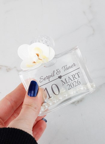 Orkide ve İnci Detaylı Cam Kolonya Şişesi