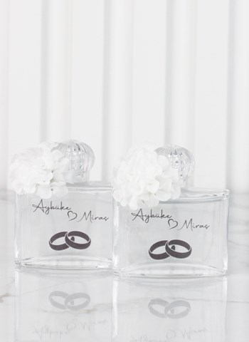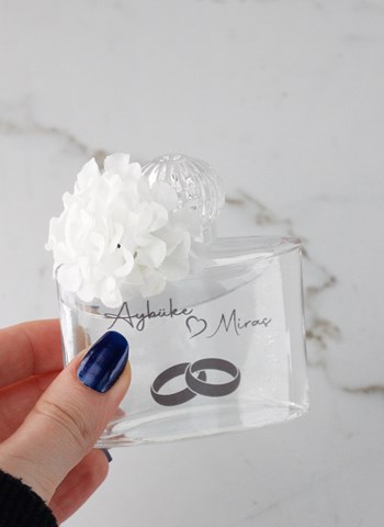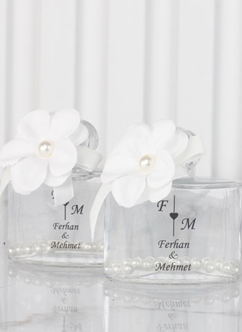 Beyaz Çiçek Süslemeli Cam Kolonya Şişesi
