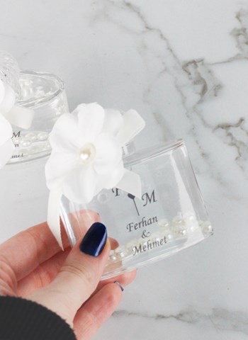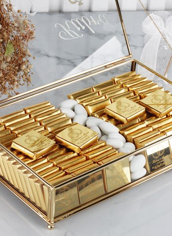Çiçek Süslemeli Cam Kutuda Söz&Nişan Çikolatası