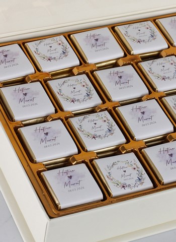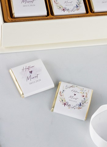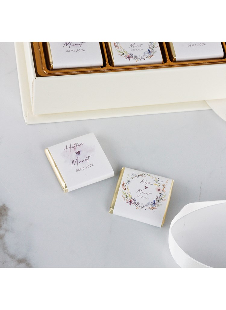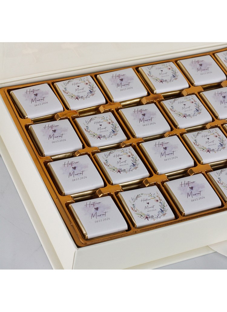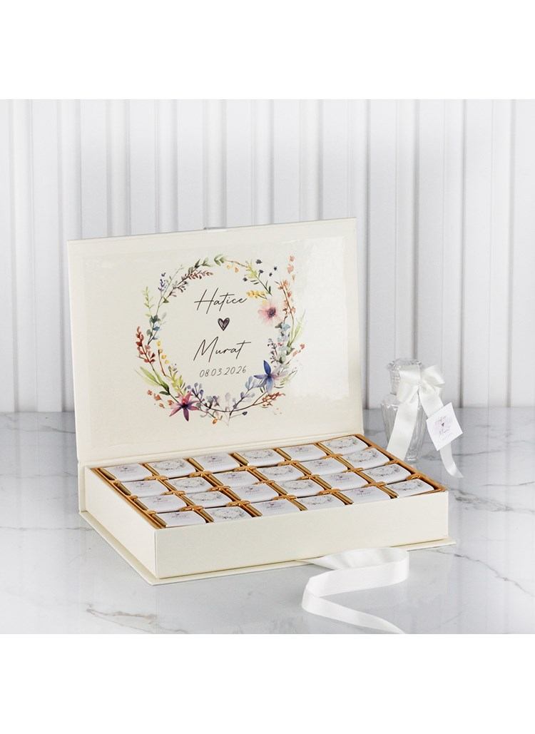 Çiçek Temalı Krem Kutuda Söz&Nişan Çikolatası