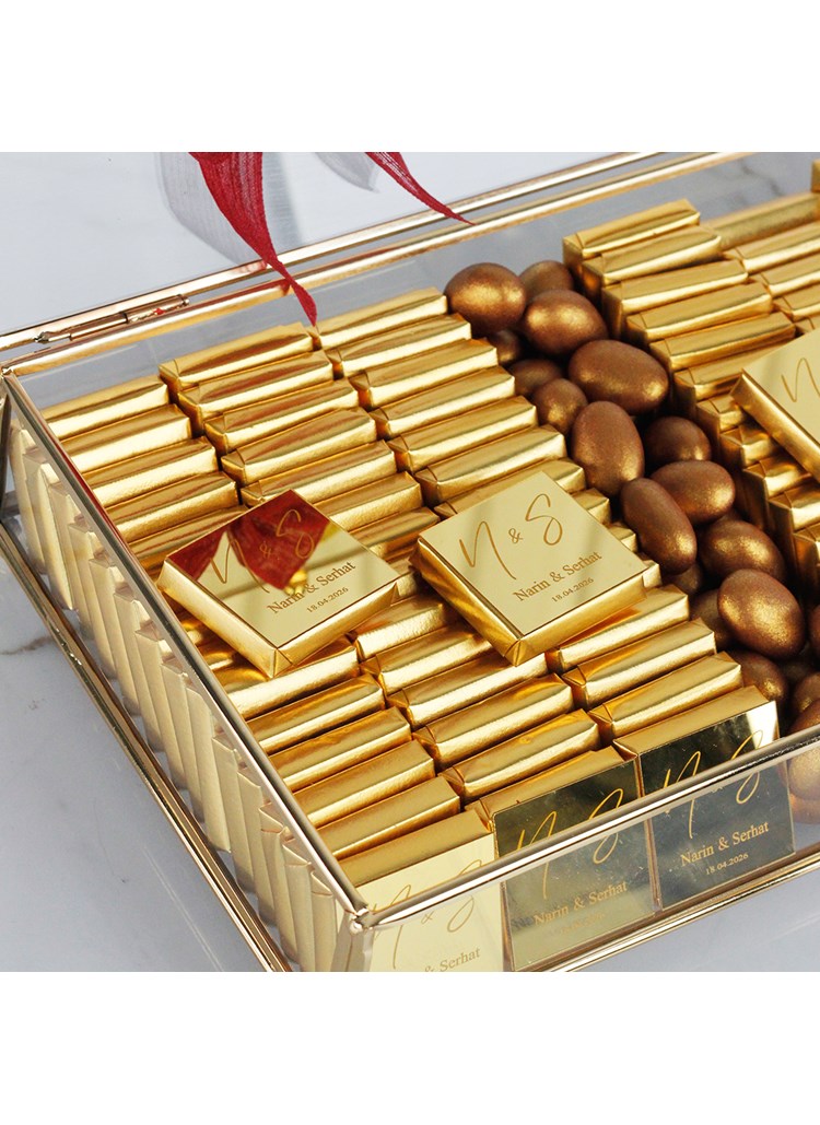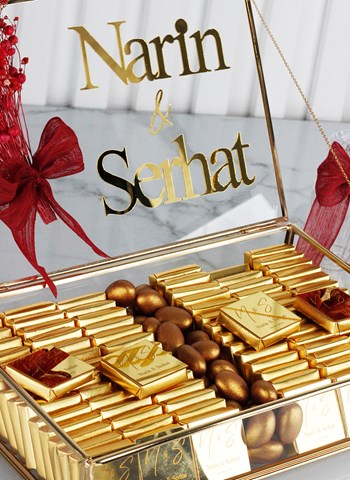 Kişiye Özel Tasarım: Çikolata ambalajları ve cam kutu, gelin ve damat ismine özel olarak hazırlanır.