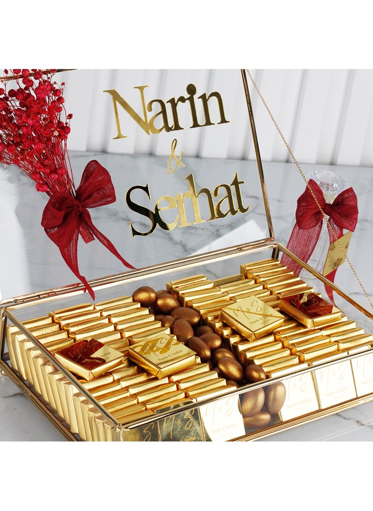 Hayatınızın en özel “evet”lerinden birini zarif detaylarla taçlandırın. İsme özel cam kutuda nişan çikolatası, şık tasarımı ve kişiye özel dokunuşlarıyla nişan törenlerinize unutulmaz bir anlam katar. Cam kutu içerisinde, çiftin isimlerine özel tasarlanan çikolatalar; hem göz alıcı hem de kalıcı bir hatıra sunar.