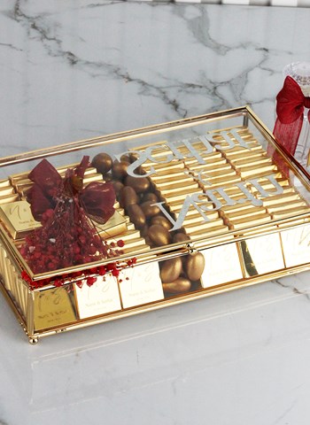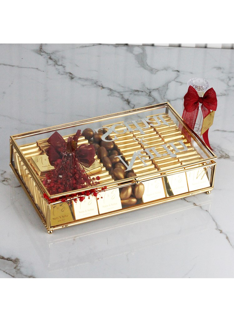 Nişan merasimleri, aile arası söz ve nişan törenleri, özel davetler ve kutlamalar için mükemmel bir alternatif olan bu özel çikolata seti, misafirlerinize zarif ve tatlı bir ikram sunmanızı sağlar. Cam kutu ise daha sonra özel eşyalarınızı saklayabileceğiniz şık bir hatıra kutusu olarak kullanılabilir.