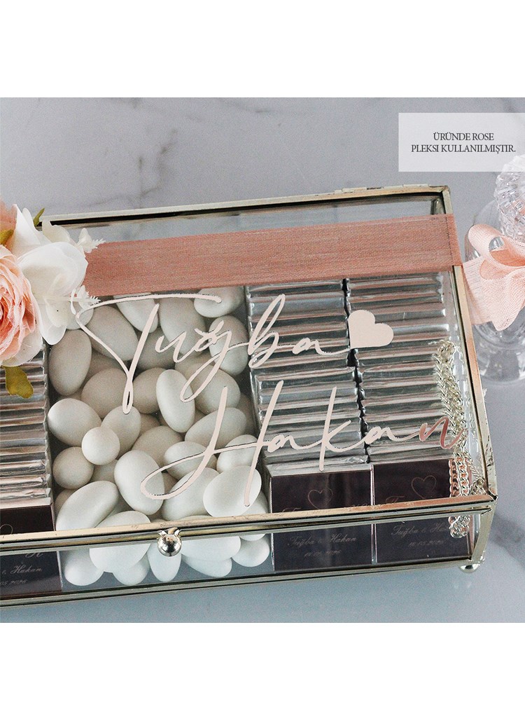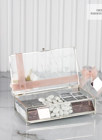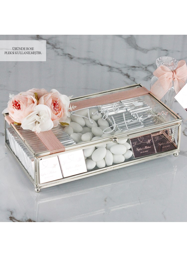 Çiçek Konseptli Cam Kutuda Söz&Nişan Çikolatası