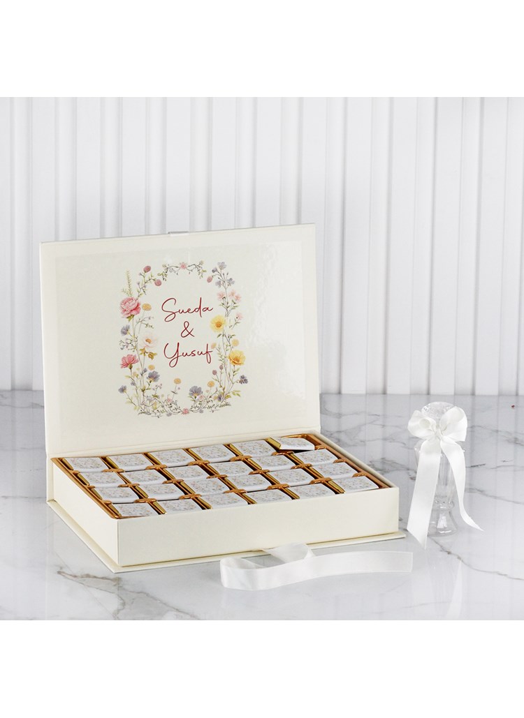 Krem renkli özel kutu içerisinde, gelin ve damadın isimlerine özel olarak hazırlanan çikolatalar; hem estetik bir sunum hem de misafirleriniz için kalıcı bir hatıra sunar. Zamansız ve zarif tasarımı sayesinde nişan masalarına uyum sağlar.