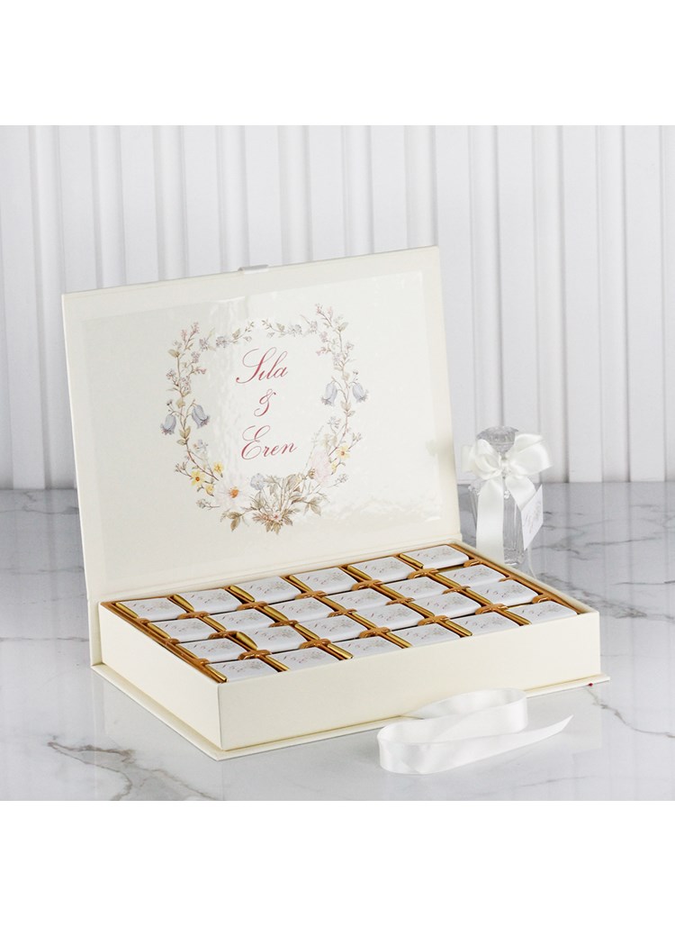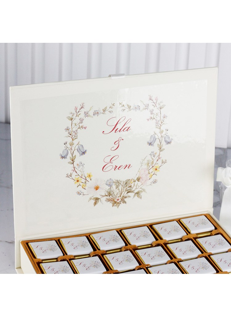 Çiçek Temalı Krem Kutuda Söz&Nişan Çikolatası