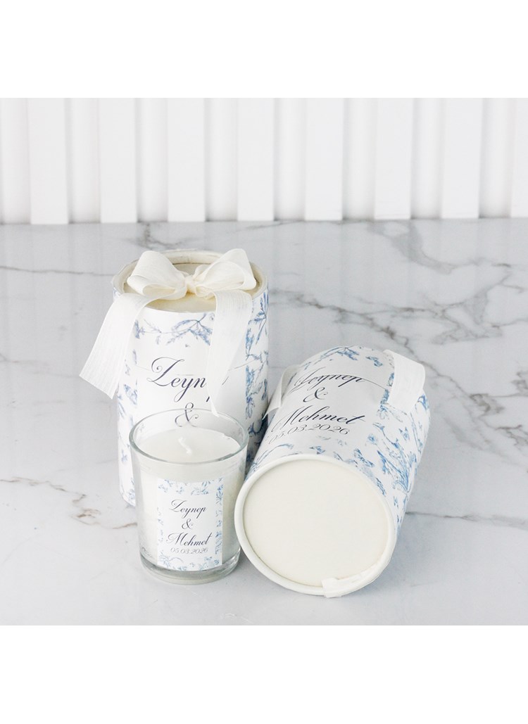 Çiçek Temalı Krem Silindir Kutuda Mum