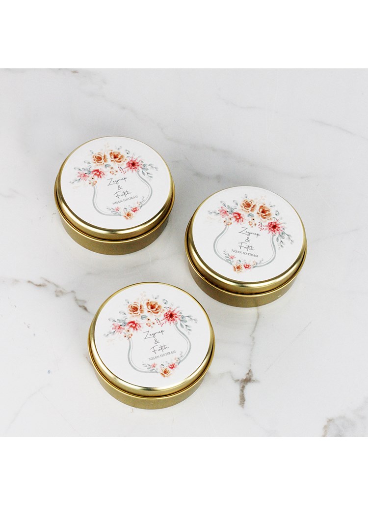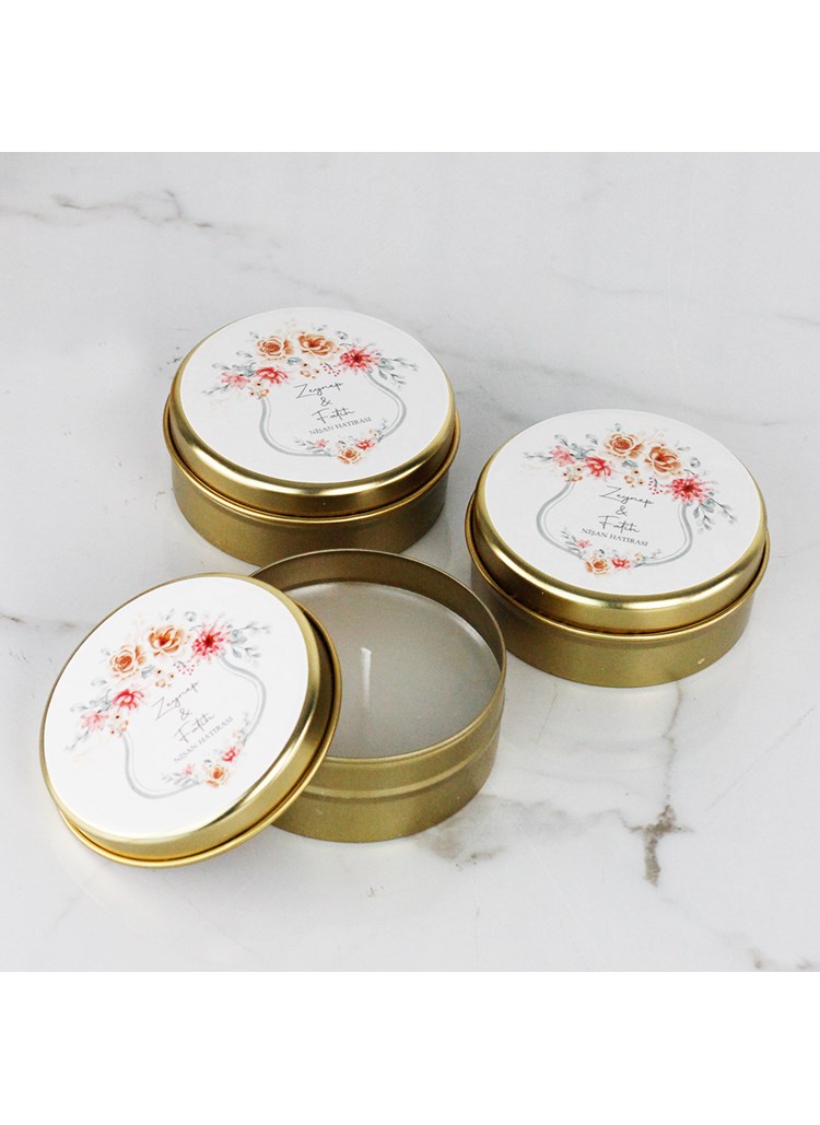 Çiçek Temalı Metal Mum | NİŞAN TEPSİSİ