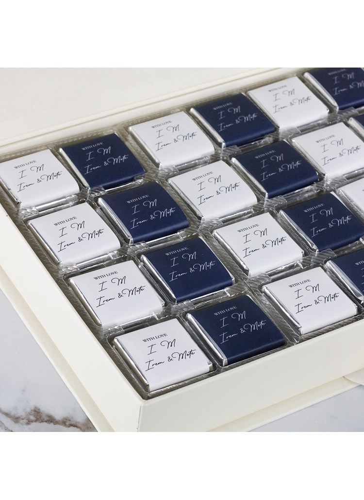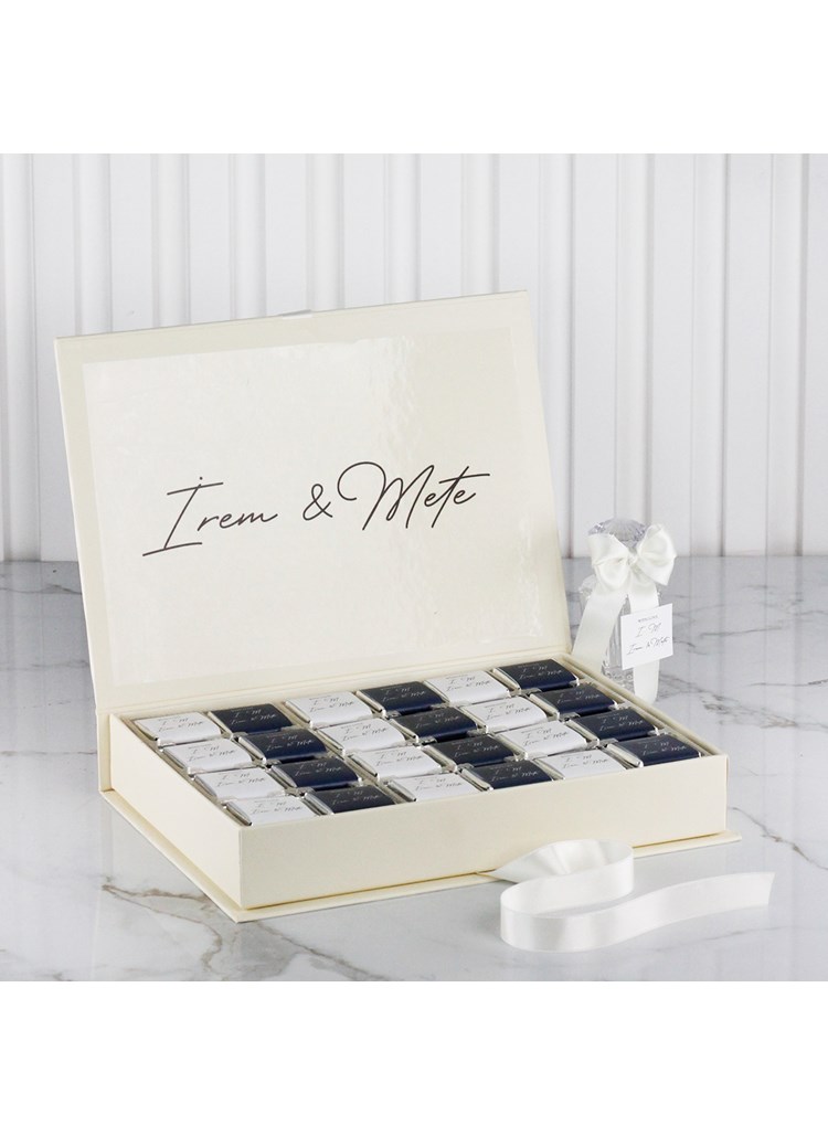 Krem renkli özel kutu içerisinde, gelin ve damadın isimlerine özel olarak hazırlanan çikolatalar; hem estetik bir sunum hem de misafirleriniz için kalıcı bir hatıra sunar. Zamansız ve zarif tasarımı sayesinde nişan masalarına uyum sağlar.
