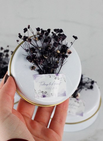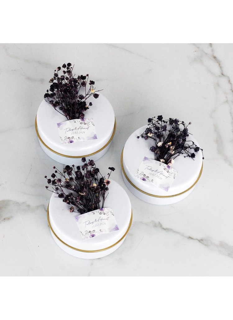 Kuru Çiçekli Metal Mum