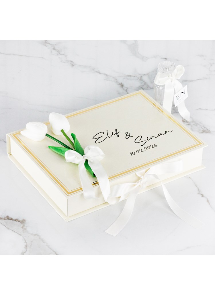 Lale Detaylı Krem Kutuda Söz&Nişan Çikolatası