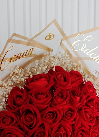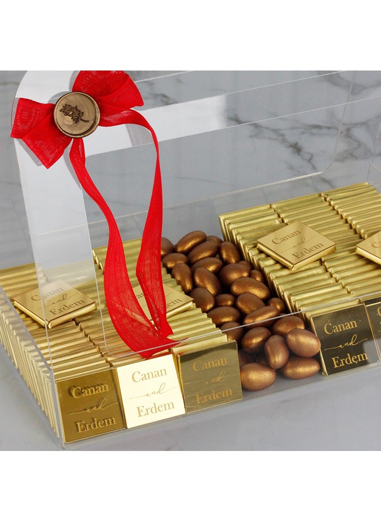 Pleksi Çantada Söz&Nişan Çikolatası ve Kırmızı Gül Buketi