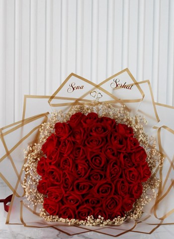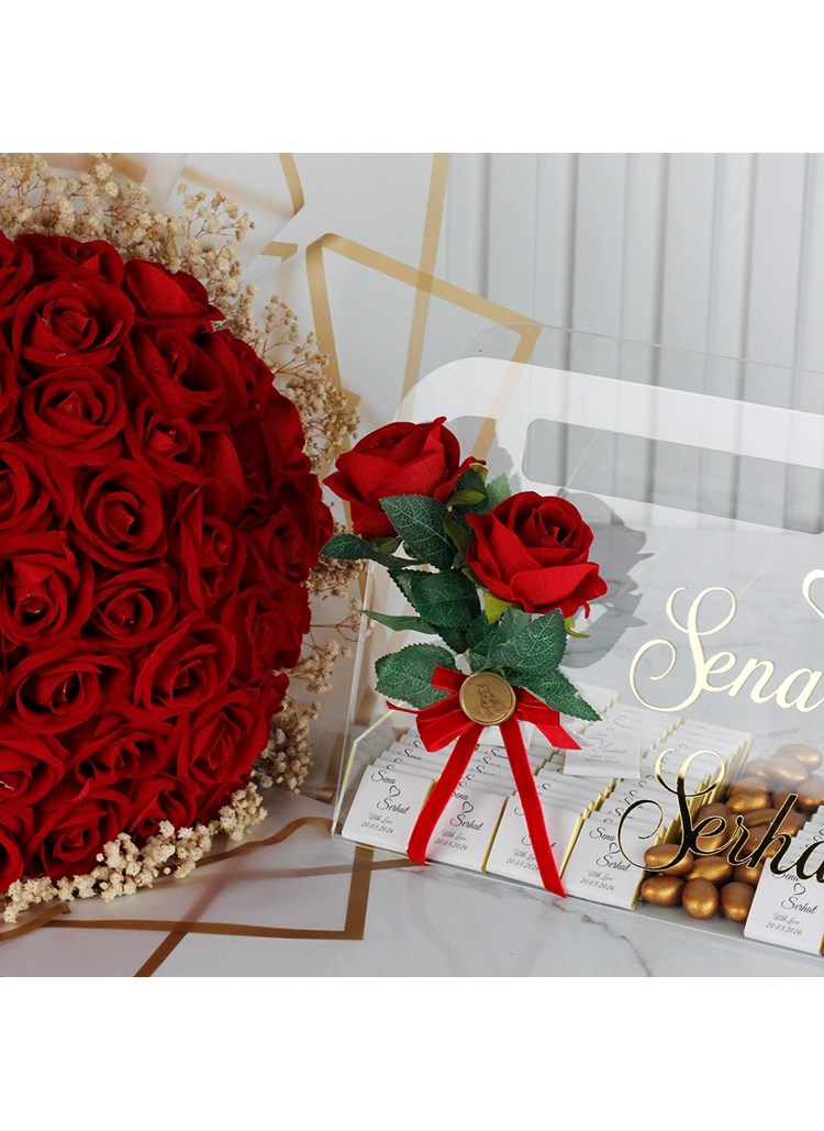 Pleksi Çantada Söz&Nişan Çikolatası ve Kırmızı Gül Buketi