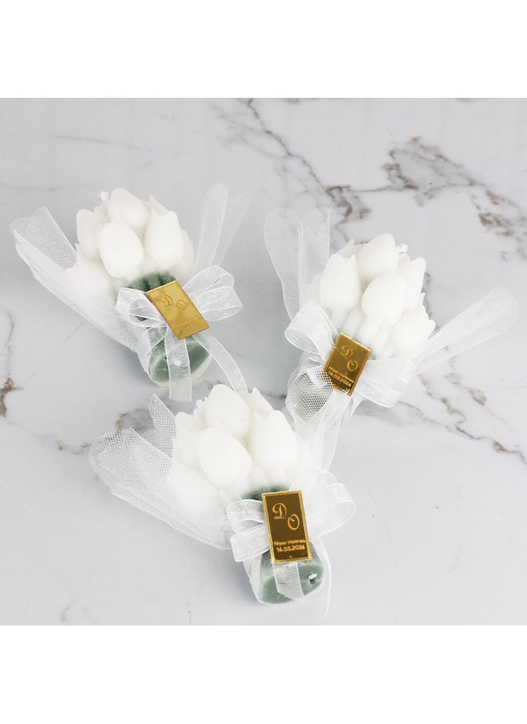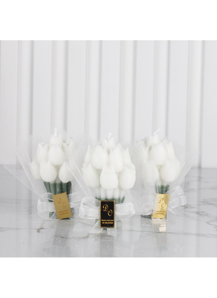 Hayatınızın en özel anlarını zarif bir dokunuşla taçlandırmak istiyorsanız, lale buketi şeklindeki mum tam size göre. Lalenin asaleti ve mumun sıcak ışığı bir araya gelerek davetlilerinize hem romantik hem de estetik bir hatıra sunar. Her baktıklarında ve yaktıklarında bu özel günü sevgiyle hatırlatır.